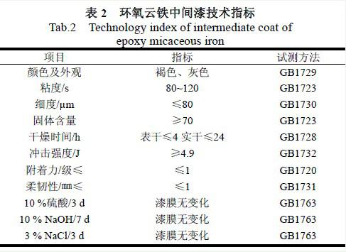 表2 環(huán)氧云鐵中間漆技術指標