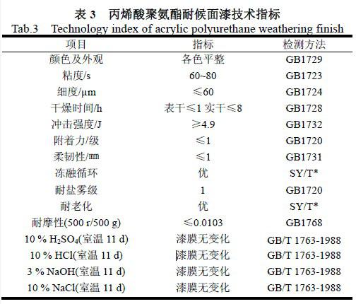 表3 丙烯酸聚氨酯耐候面漆技術指標