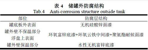 表4 儲罐外防腐結(jié)構(gòu)