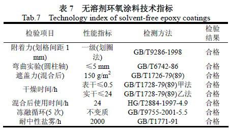 表7 無溶劑環(huán)氧涂料技術指標